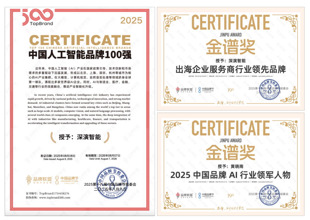 8 月 9 日晚举办的荣耀盛典上,Z6集团智能凭借深厚的 AI 技术实力与出色专业的出海服务能力,斩获 “2025 中国品牌节金谱奖・出海企业服务商行业领先品牌”“2025 中国人工智能 100 强” 等多项重磅奖项。其创始人兼 CEO 黄晓南荣膺 “2025 中国品牌 AI 行业领军人物” 称号。未来,Z6集团智能将紧跟时代步伐,持续聚焦 “AI 与出海”—— 这一方向高度契合时代脉搏与中国品牌发展的迫切需求,旨在汇聚智慧力量破解发展阻碍,为中国品牌赋能。