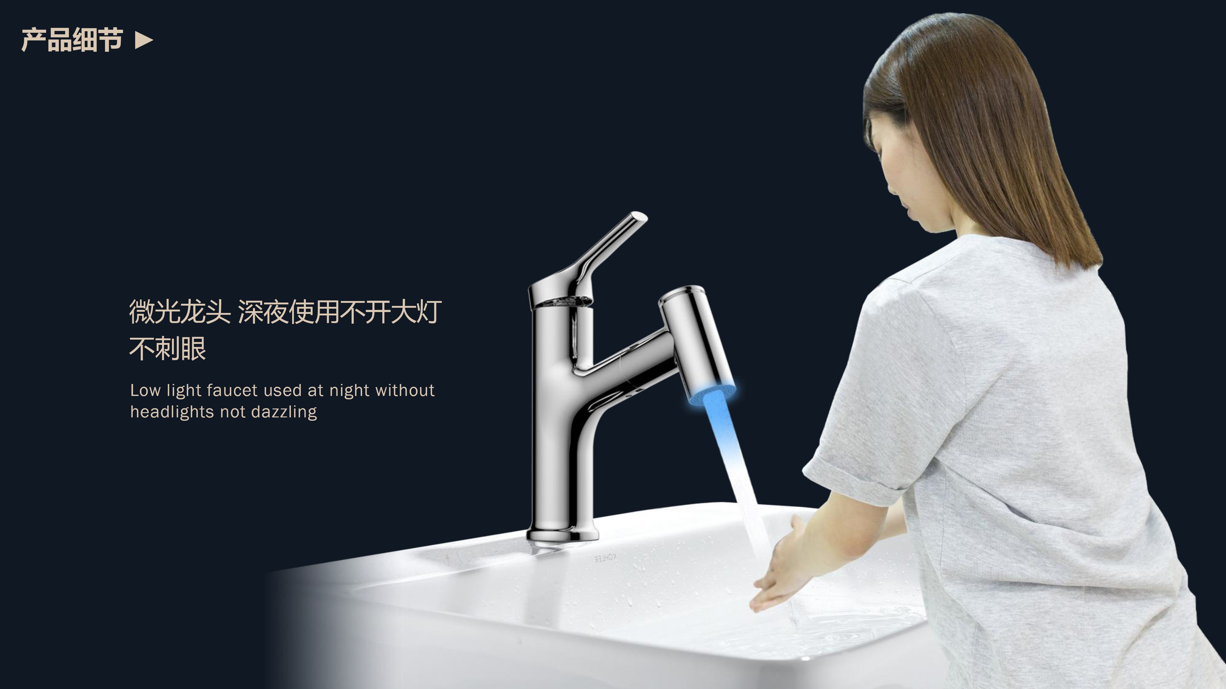 360 ° omnidirectional pulling and cleaning; The low-light faucet can be used late at night without turning on the headlights, without dazzling; Daily shampoo, easy to wash by pulling water; Press to switch the two-function spray; Three color LED lights display water temperature; Gravity hammer reset design, smooth expansion and accurate return; Without tools, push and screw for 10 seconds